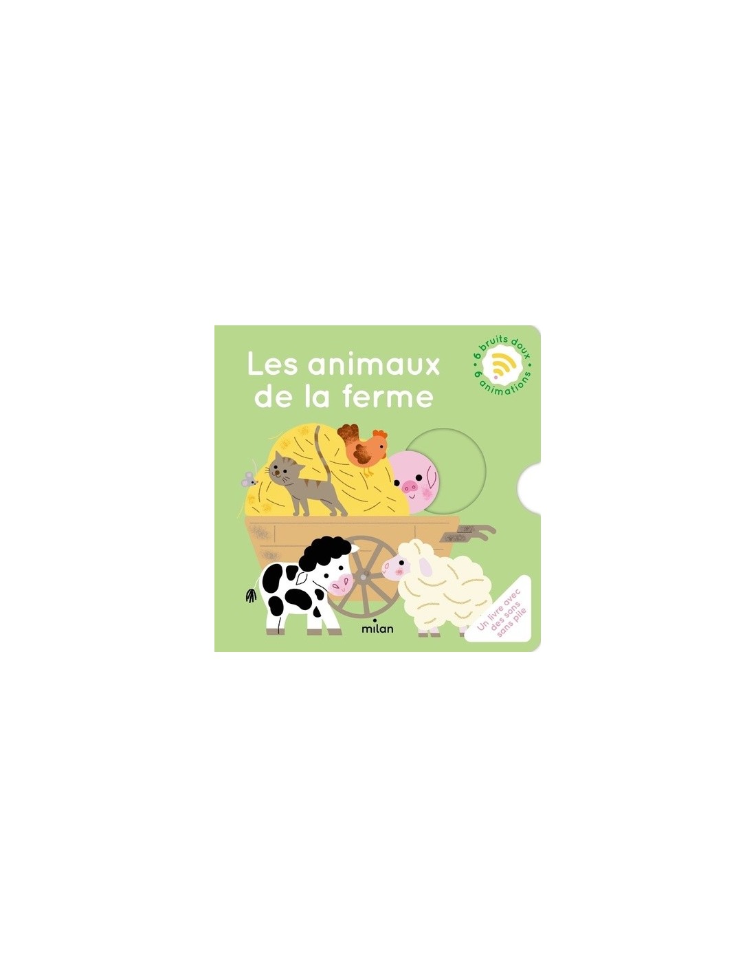 "Mon imagier des petits bruits" : la première collection d'imagiers sonores sans batterie, sans piles et sans puces ! "Les Animaux de la ferme" est un imagier à manipuler pour déclencher les petits bruits de la ferme : le cochon, les canards, la porte de l'étable, le mouton dans la paille... Un imagier sans électronique ni puces Grâce à un mécanisme inséré dans chaque double page, bébé découvrira des petits bruits variés et très évocateurs. Des sons mécaniques à réécouter à l'infini, pour une utilisation durable, sans batterie ni composants électroniques. Des bruits très doux déclenchés par des animations différentes Sur chaque double page, le parent actionne un mécanisme différent pour déclencher le bruit tout doux correspondant à l'image : le cochon grogne, la porte de l'étable s'ouvre pour faire apparaître le veau, la poule picore, le mouton saute, etc. Une approche sensorielle plurielle En associant l'image qui s'anime, le son et le mot, "Mon imagier des petits bruits" permet une approche sensorielle complète et accompagne le bébé dans sa découverte du monde et du langage.