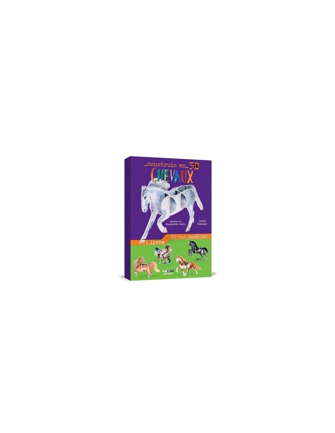 10 fantastiques maquettes en 3D pour obtenir tout simplement de remarquables reproductions de chevaux. Le coffret contient 10 feuilles en EVA imprimé en couleurs avec des pièces détachables à assembler par emboîtement, sans ciseaux ni colle, pour réaliser 10 fantastiques maquettes en 3D et obtenir ainsi tout simplement de remarquables reproductions de chevaux. Dans le coffret, un livre de 28 pages avec des illustrations aux couleurs vives et de minutieuses descriptions des sujets contient des instructions en images qui permettent de monter aisément les maquettes.