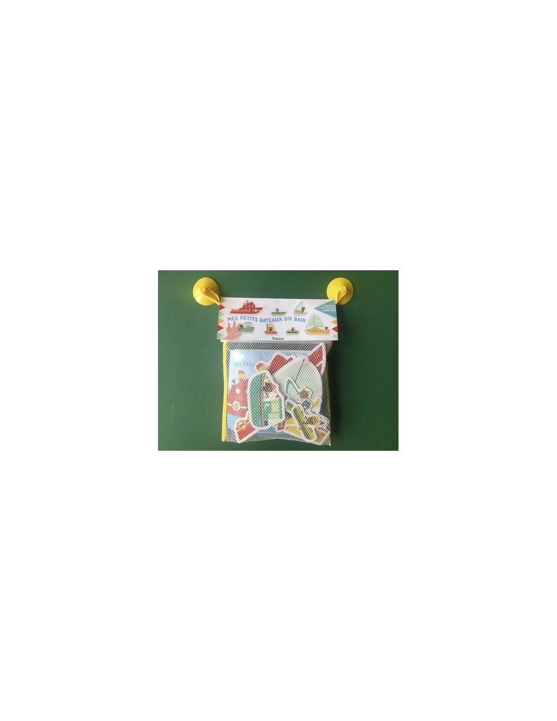 De la barque au chalutier, 7 bateaux à manipuler et un livre-bain pour : - apprendre du vocabulaire ; - nommer les différents bateaux ; - catégoriser (par taille, par couleur). L'emballage est réutilisable : le filet, pour tout ranger, est à accrocher à l'aide des ventouses !